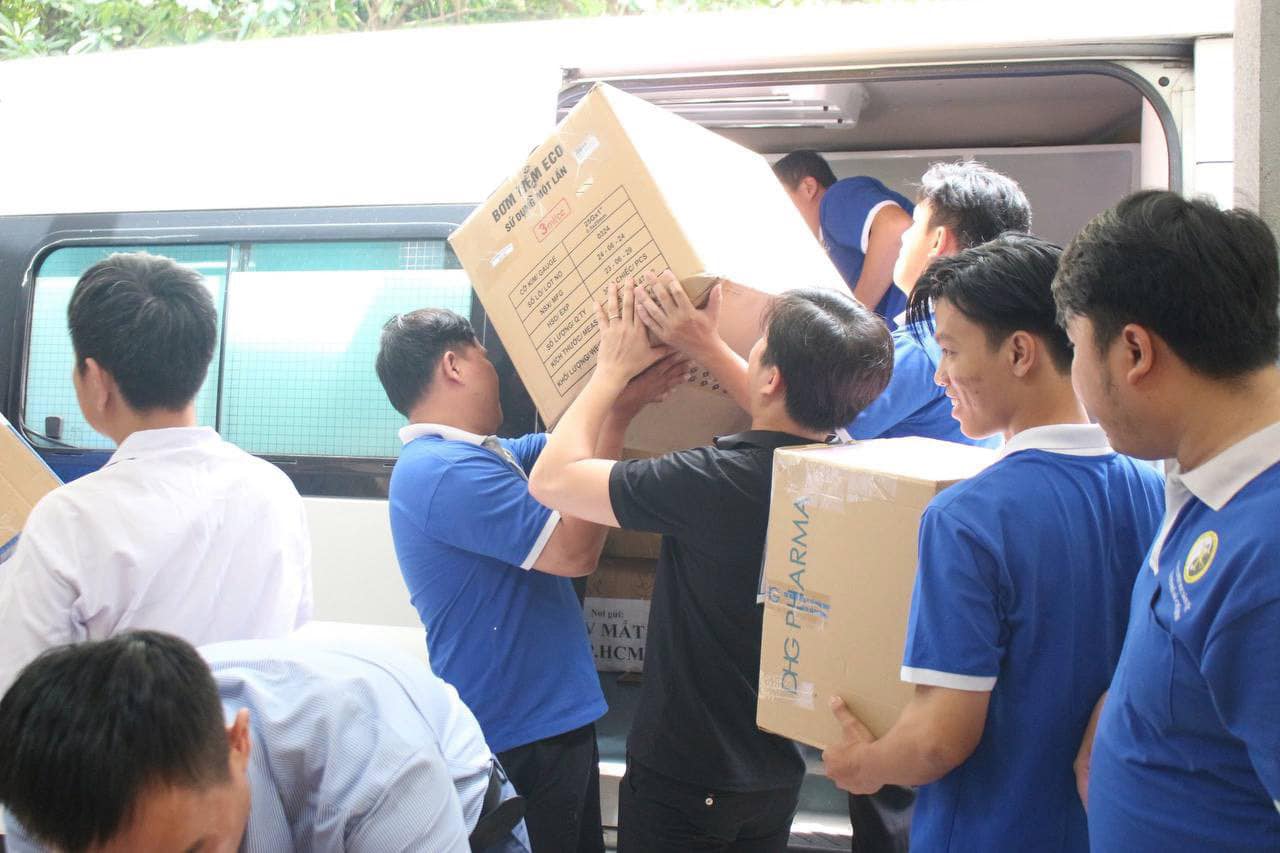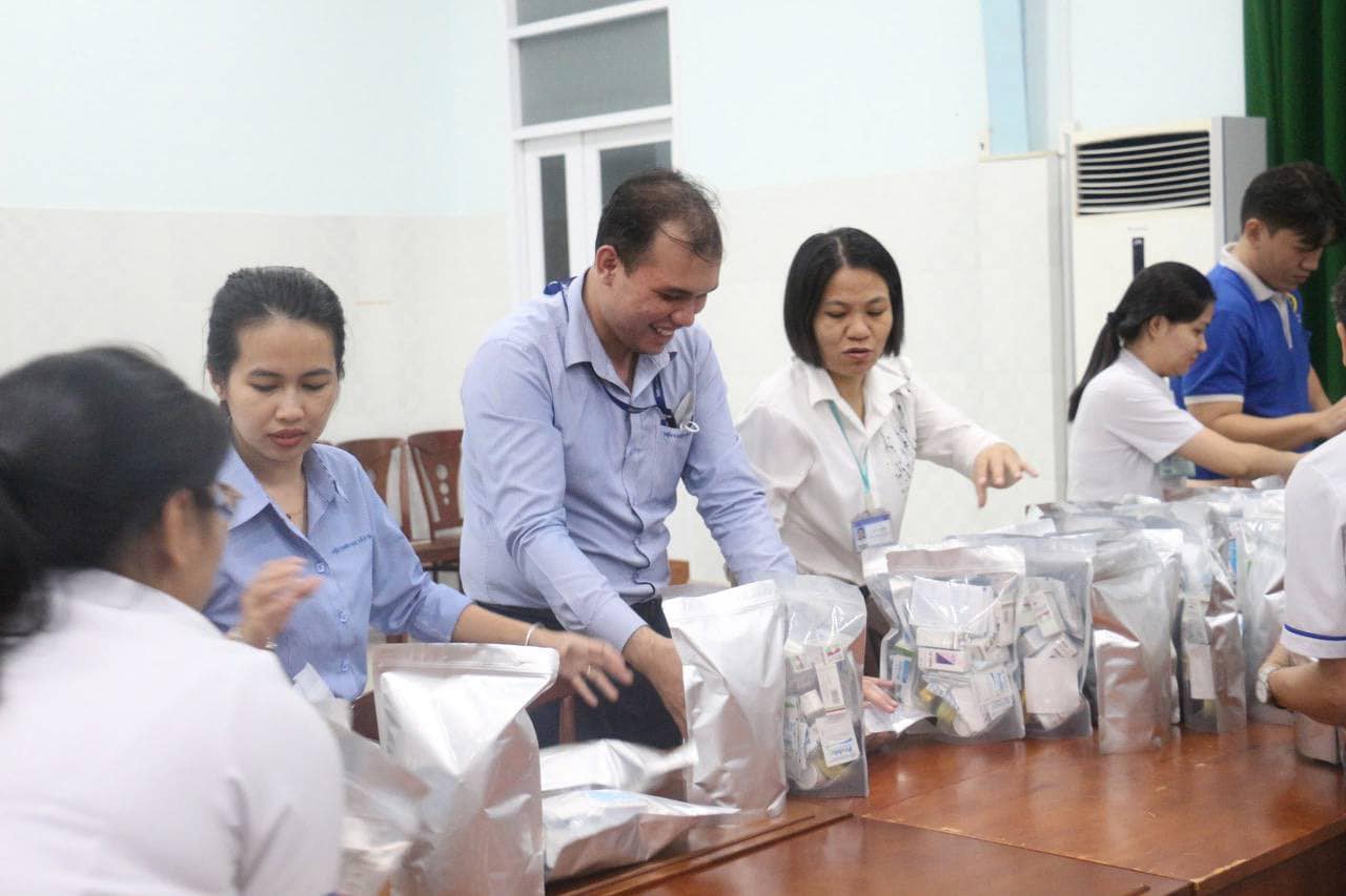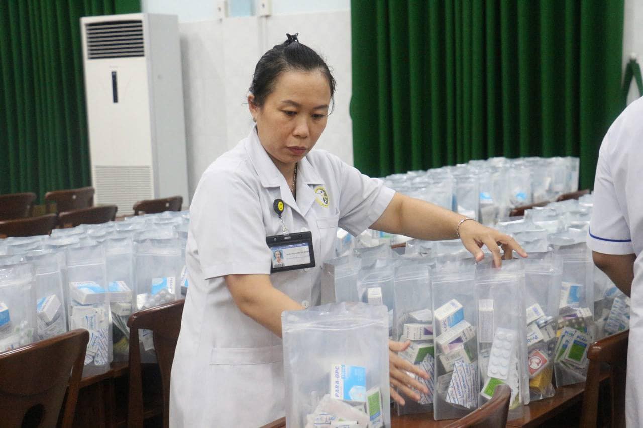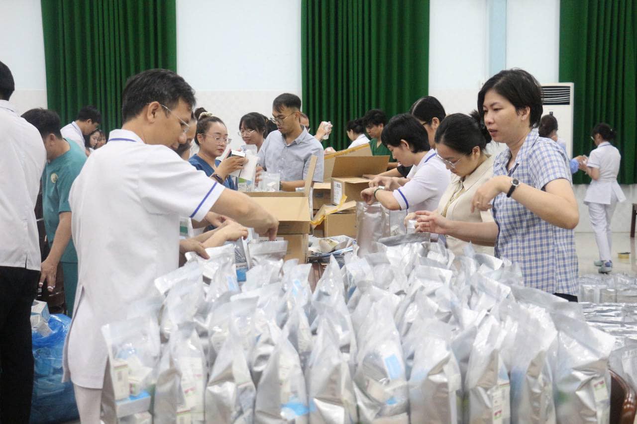 Các túi thuốc đang được đóng để chuyển tới các tỉnh bị thiệt hại bởi cơn bão số 3